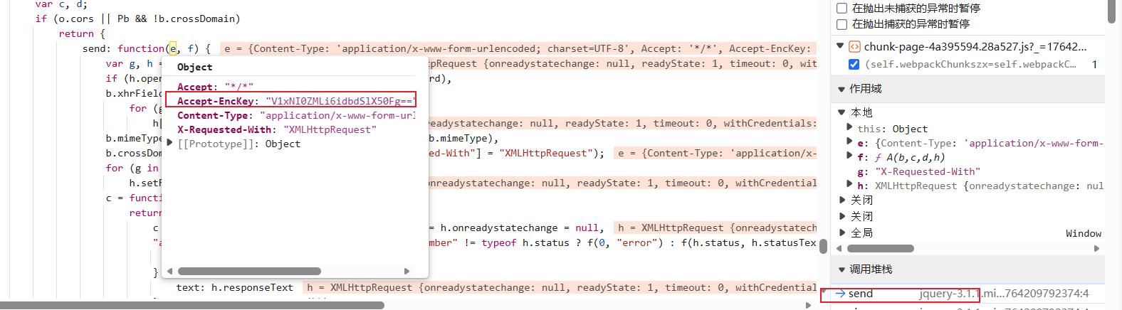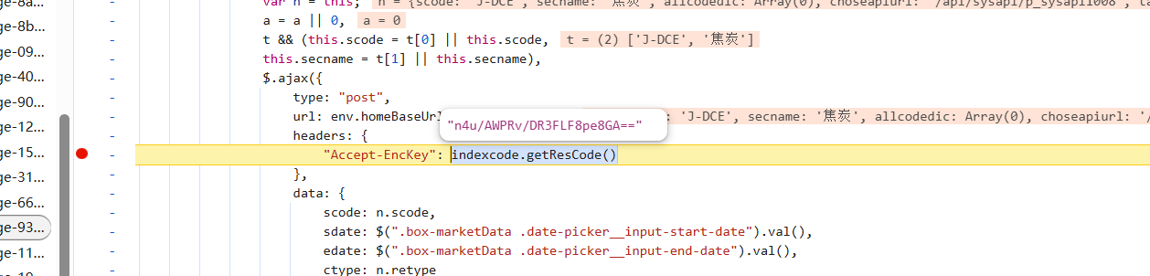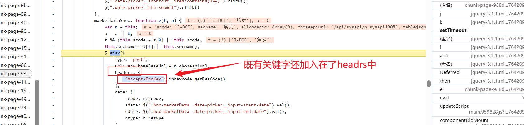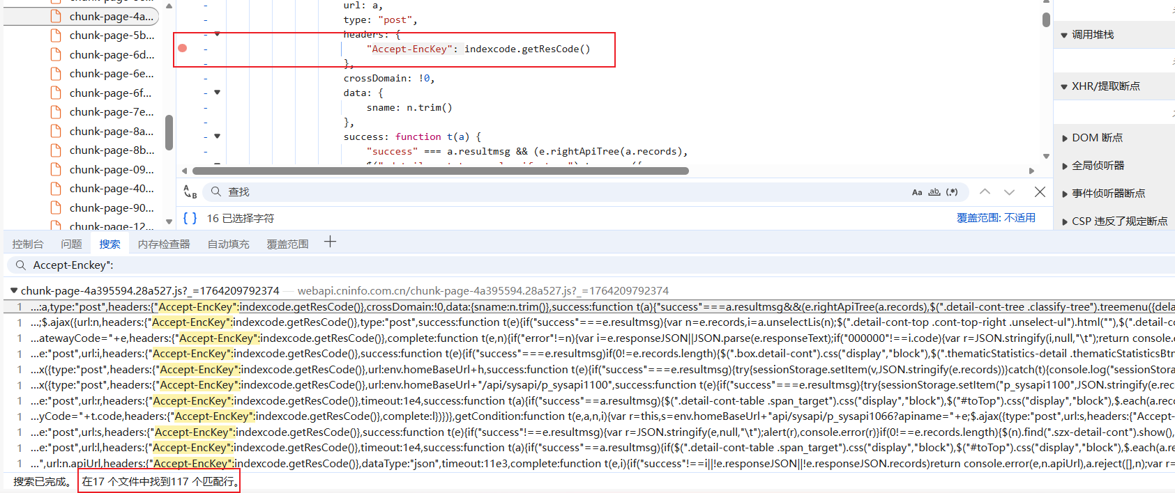 这些没注释,没删除的参数都需要带,逆向的就是Accept-EncKey参数,然后我们搜索关键字: