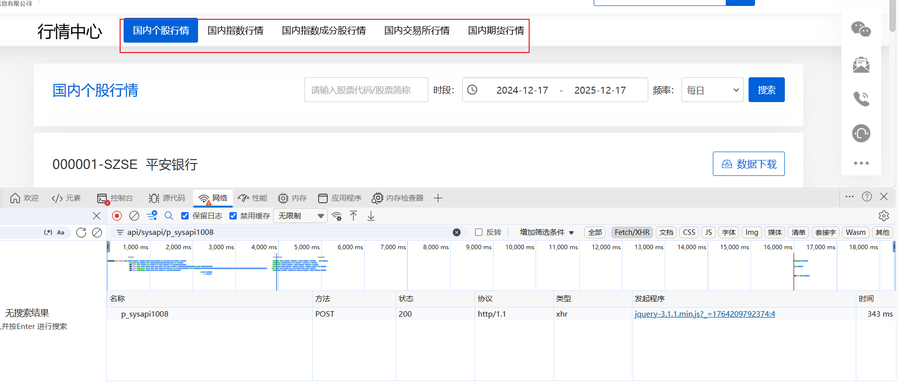 本网站找加密参数要争分夺秒哈,因为他的密文有时效性,过一段儿时间就会失效,所以要尽快测试,先找到它的接口: