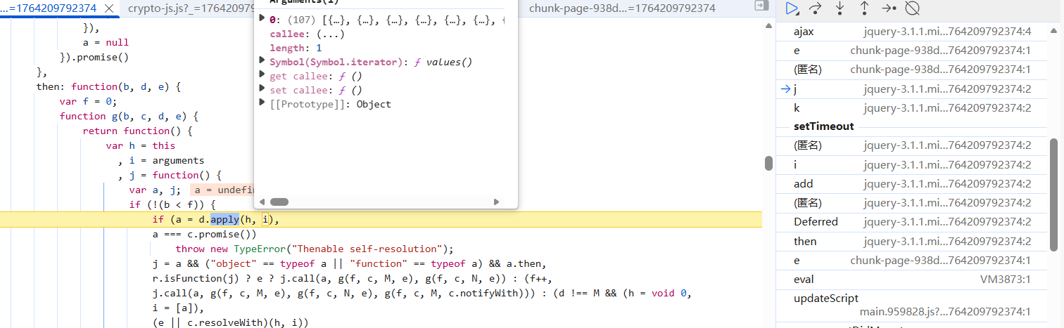 那就在这里打上断点,注意:这里是在ajax前打上断点,因为异步里面可能断不进去,断下来后步入进去:
