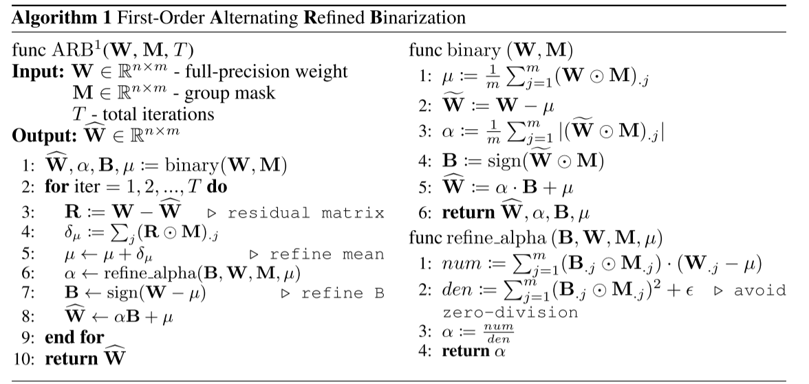 - 提出新型二值化框架 ARB,通过逐步对齐二值化与全精度权重的分布 ,实现量化误差降低;同时,对逐步更新过程中的量化误差进行了严格的理论分析。