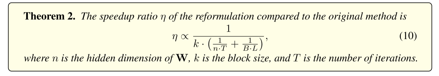 其中,n为权重的隐藏维度,k为块大小,T为迭代次数。