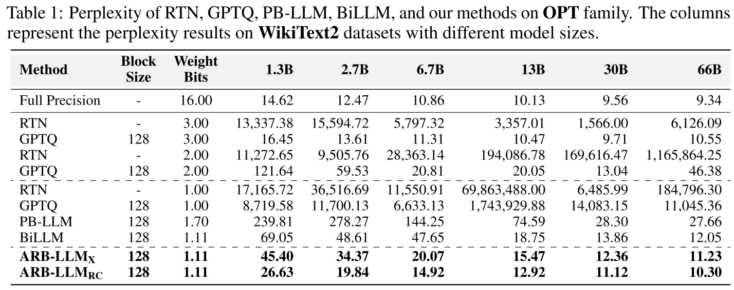 - 在基础 ARB 框架上,开发两种高级变体:融入校准数据的 ARB(ARB-X)和行列双向的 ARB(ARB-RC),分别针对二进制大型语言模型的特定挑战。