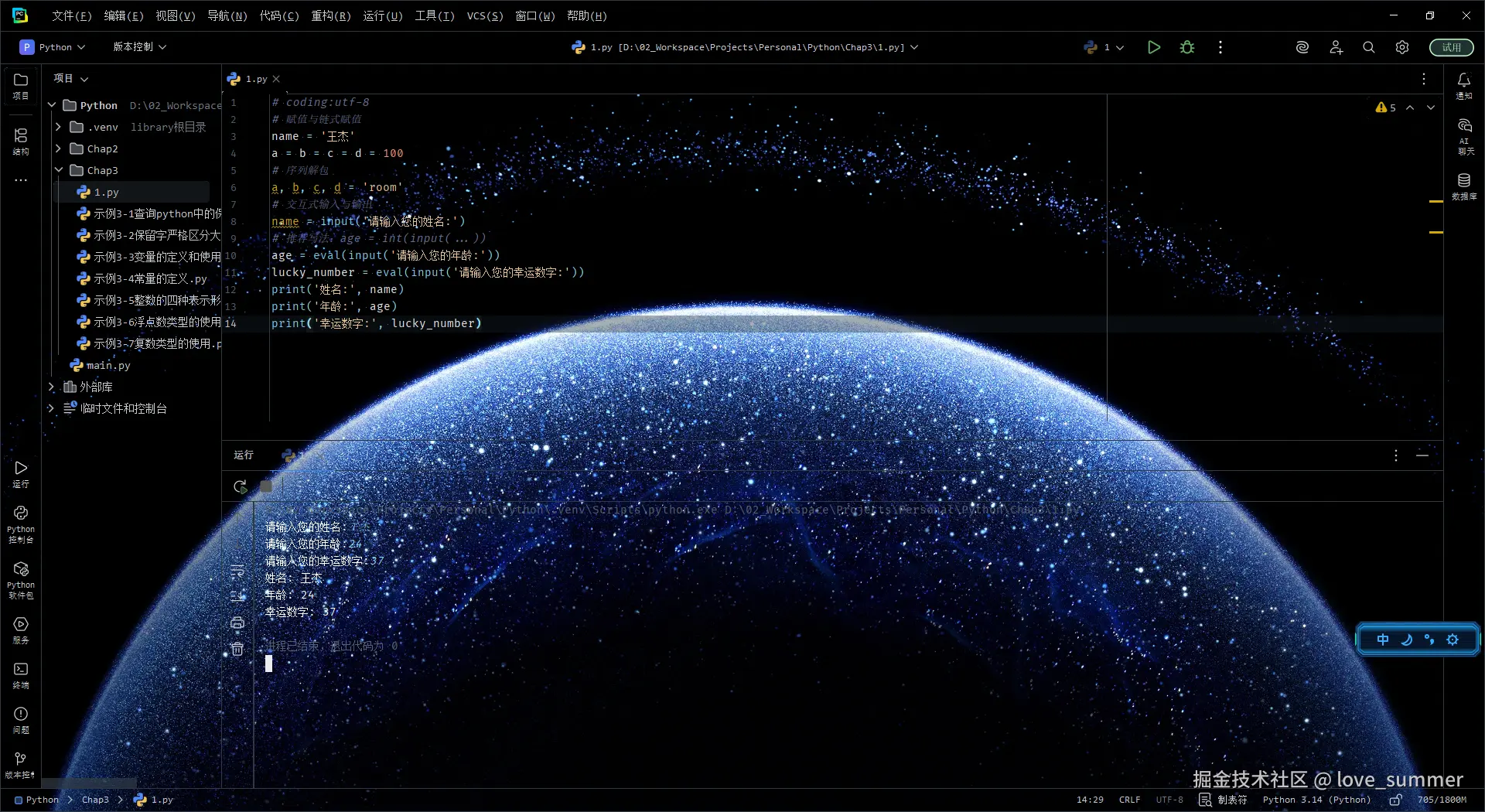 下面是一个涵盖了赋值、解包、输入输出的完整示例(示例4-1),展示了Python顺序结构的典型写法: