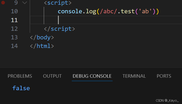 console.log(/abc/.test('ab'))