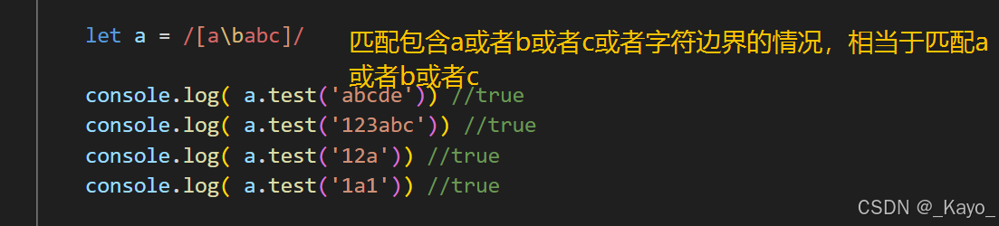 对于[\babc]的模式,它表示匹配a或b或c或单词边界,在这个例子中,[]可以解析\b为转义字符,但是由于\b包裹在[]中,它会被理解为或者的情况的其中之一,实际上,这个\b并没有生效,最终的含义还是匹配a或者b或者c: