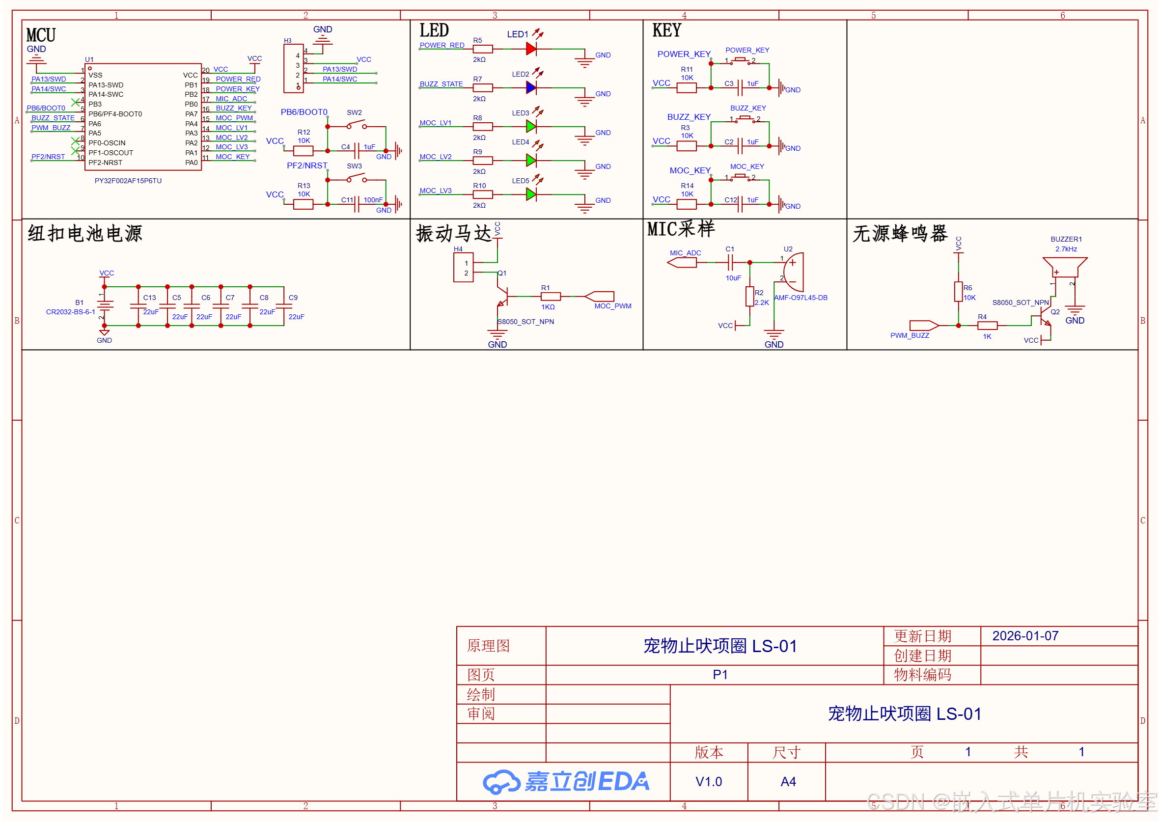 宠物止吠项圈硬件设计全解析:原理图+功能逻辑+优化方案