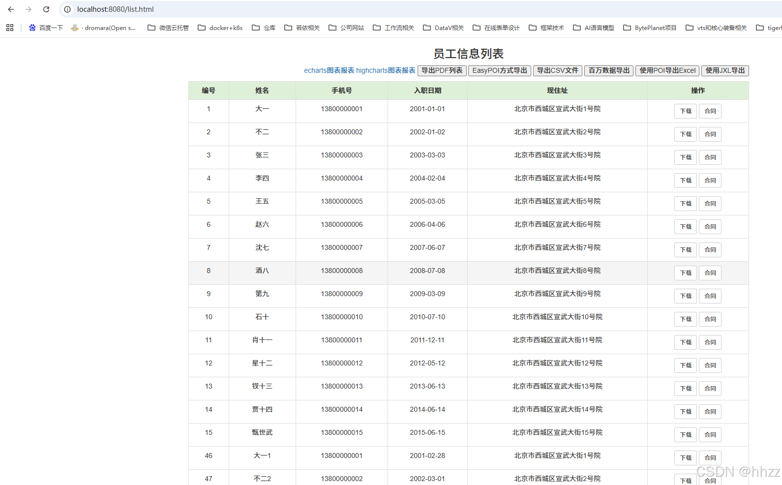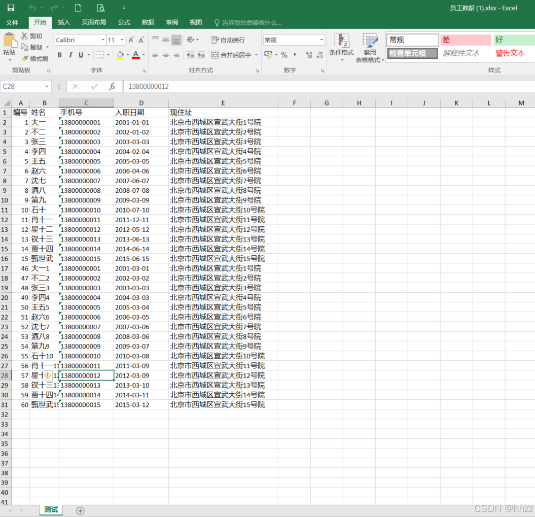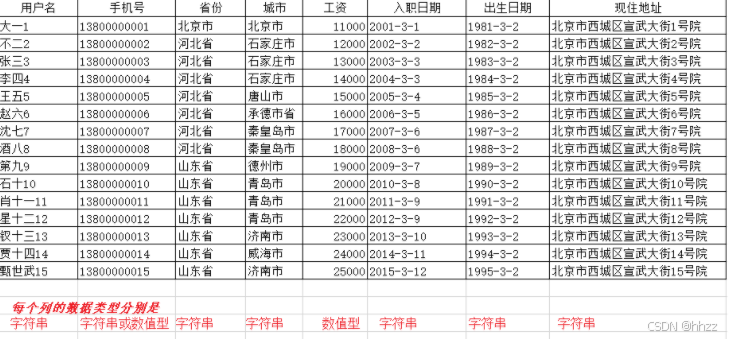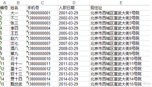 String[] titles = new String[]{"编号", "姓名", "手机号", "入职日期", "现住址"};