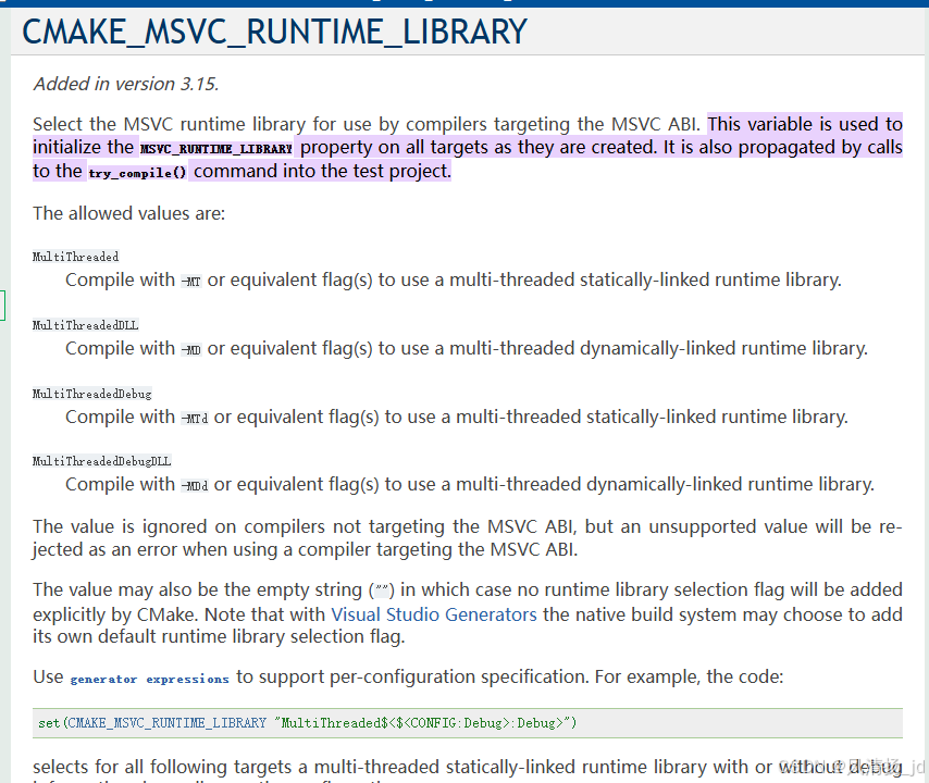 CMAKE_MSVC_RUNTIME_LIBRARY --- CMake 4.2.1 Documentation