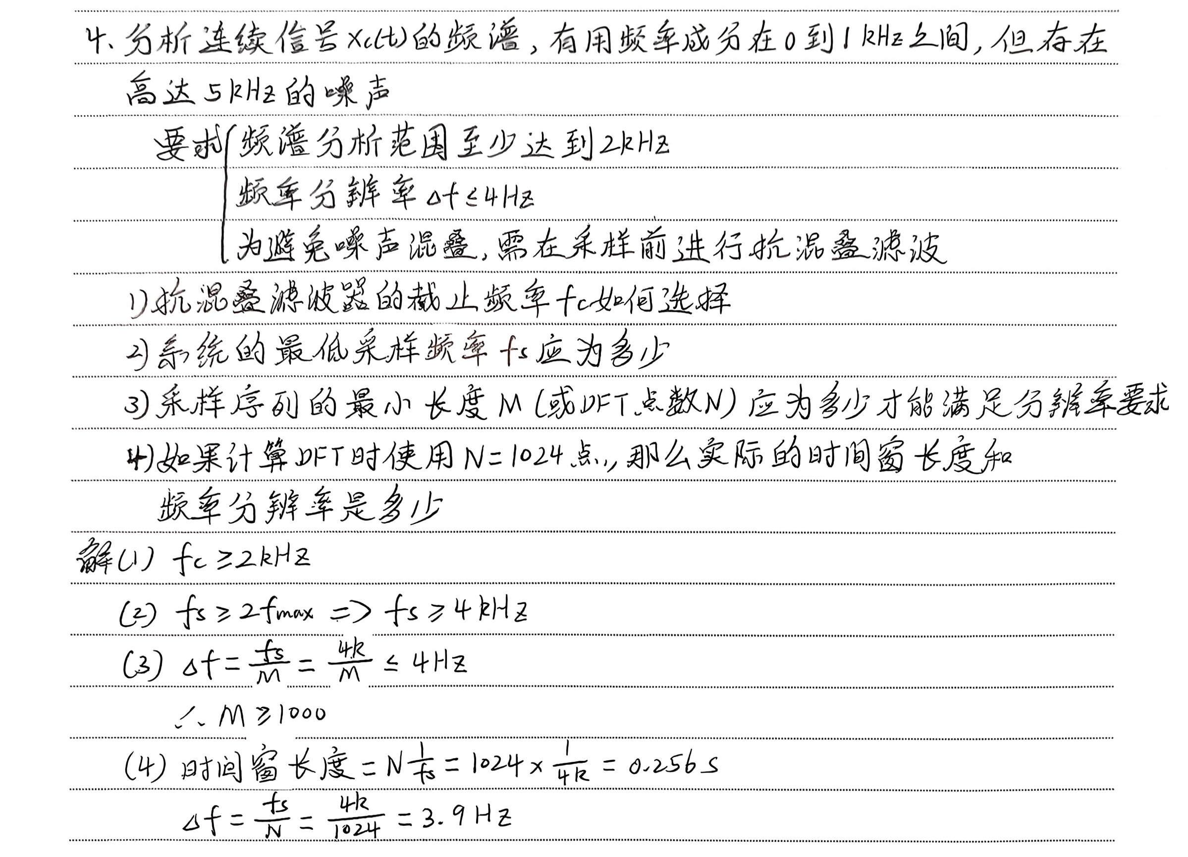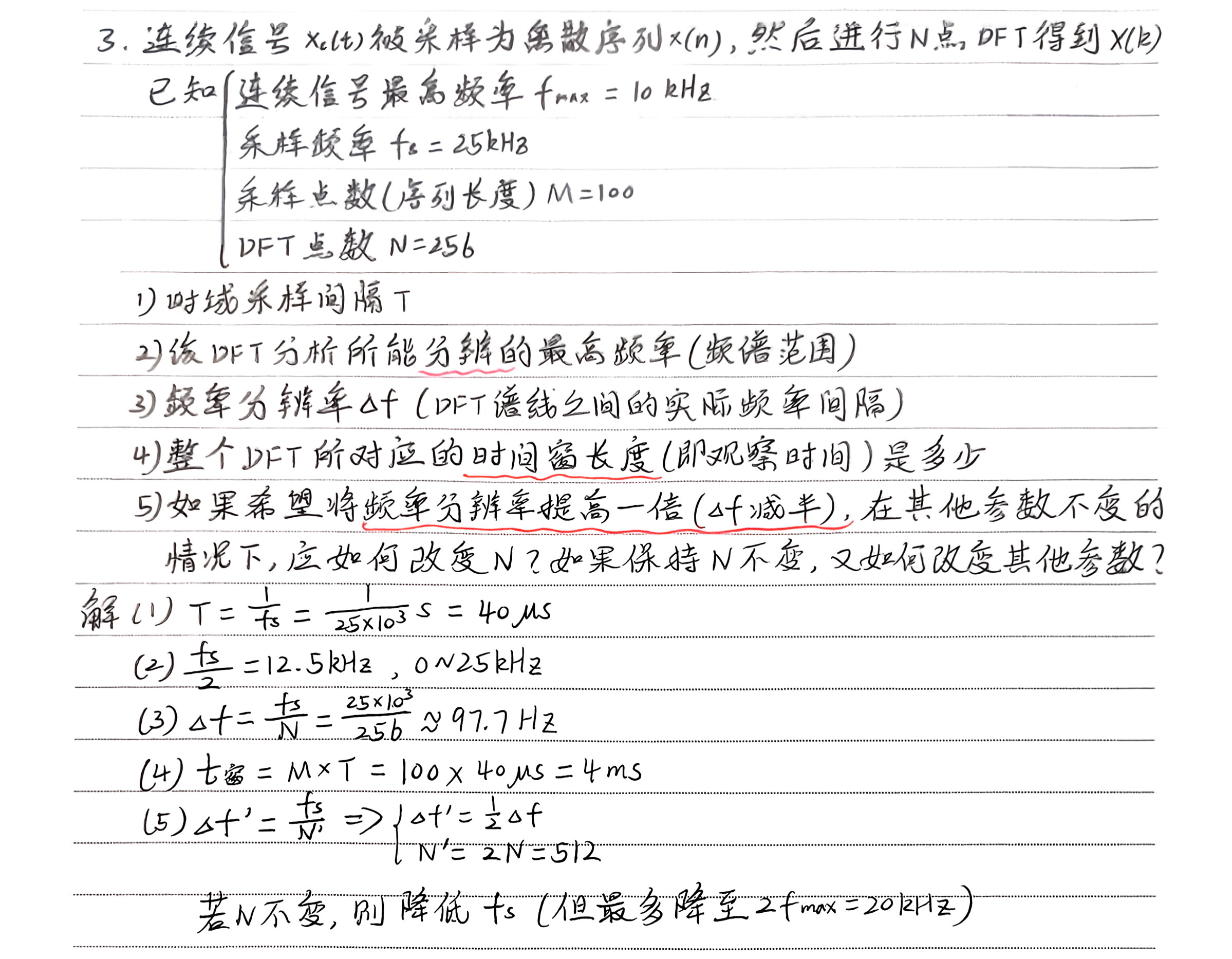 频域采样点数N与采样间隔Δf的关系: N = f s / Δ f N=f_s/Δf N=fs/Δf