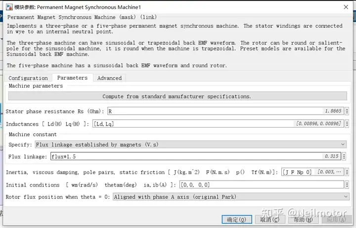 可以得出,控制器中磁链与实际磁链的误差只会对q轴电流造成静差,对d轴电流无影响。当电机正转,控制器中磁链大于实际值时,∆ψf>0,iq实际值大于指令; 当控制器中磁链小于实际值时,∆ψf<0,iq实际值小于指令。