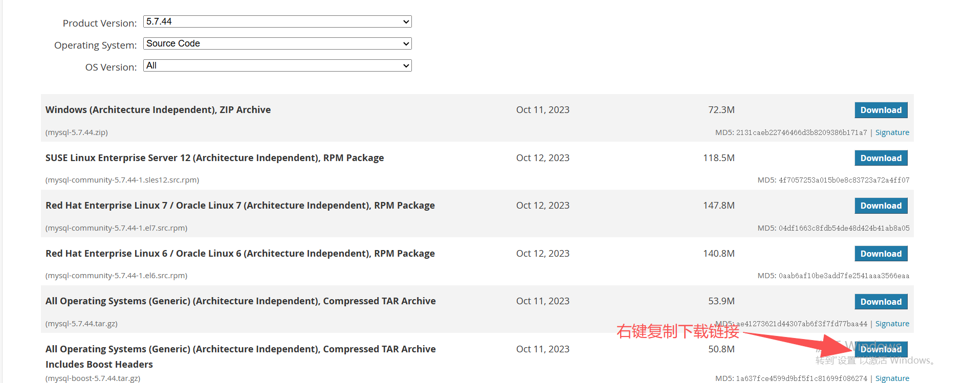 [root@lnmp ~]# wget https://downloads.mysql.com/archives/get/p/23/file/mysql-boost-5.7.44.tar.gz