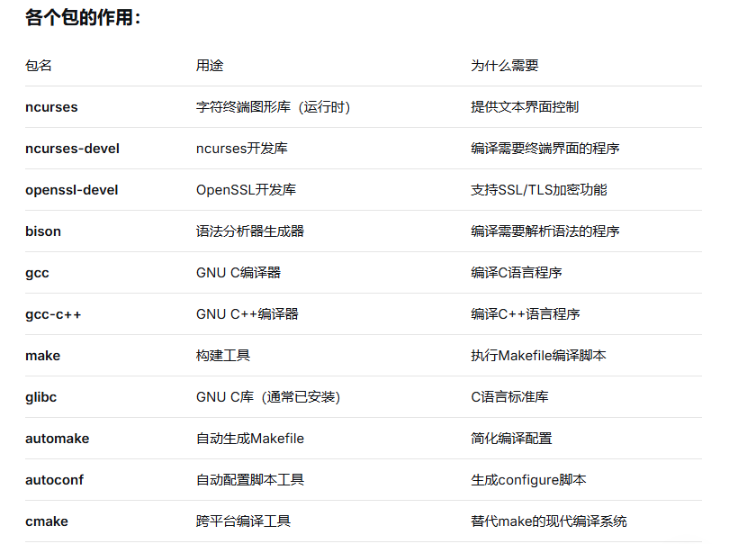 [root@lnmp ~]# yum -y install ncurses ncurses-devel openssl-devel bison gcc gcc-c++ make glibc automake autoconf cmake
