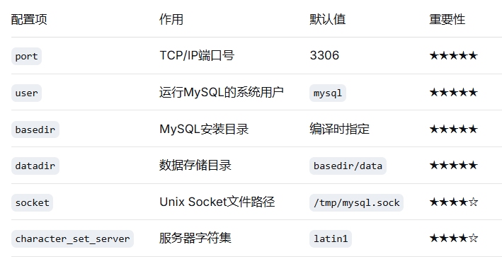 -DMYSQL_TCP_PORT=3306 # MySQL服务端口(默认3306) -DMYSQL_UNIX_ADDR=/tmp/mysql.sock # Unix Socket文件路径