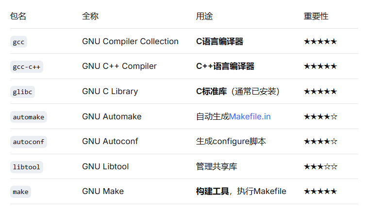 -DWITH_READLINE=1 # 启用命令行编辑功能 -DWITH_SSL=system # 使用系统OpenSSL库 -DWITH_EMBEDDED_SERVER=1 # 编译嵌入式库(libmysqld) -DENABLED_LOCAL_INFILE=1 # 允许LOAD DATA LOCAL INFILE -DWITH_INNOBASE_STORAGE_ENGINE=1 # 启用InnoDB存储引擎(默认已启用)