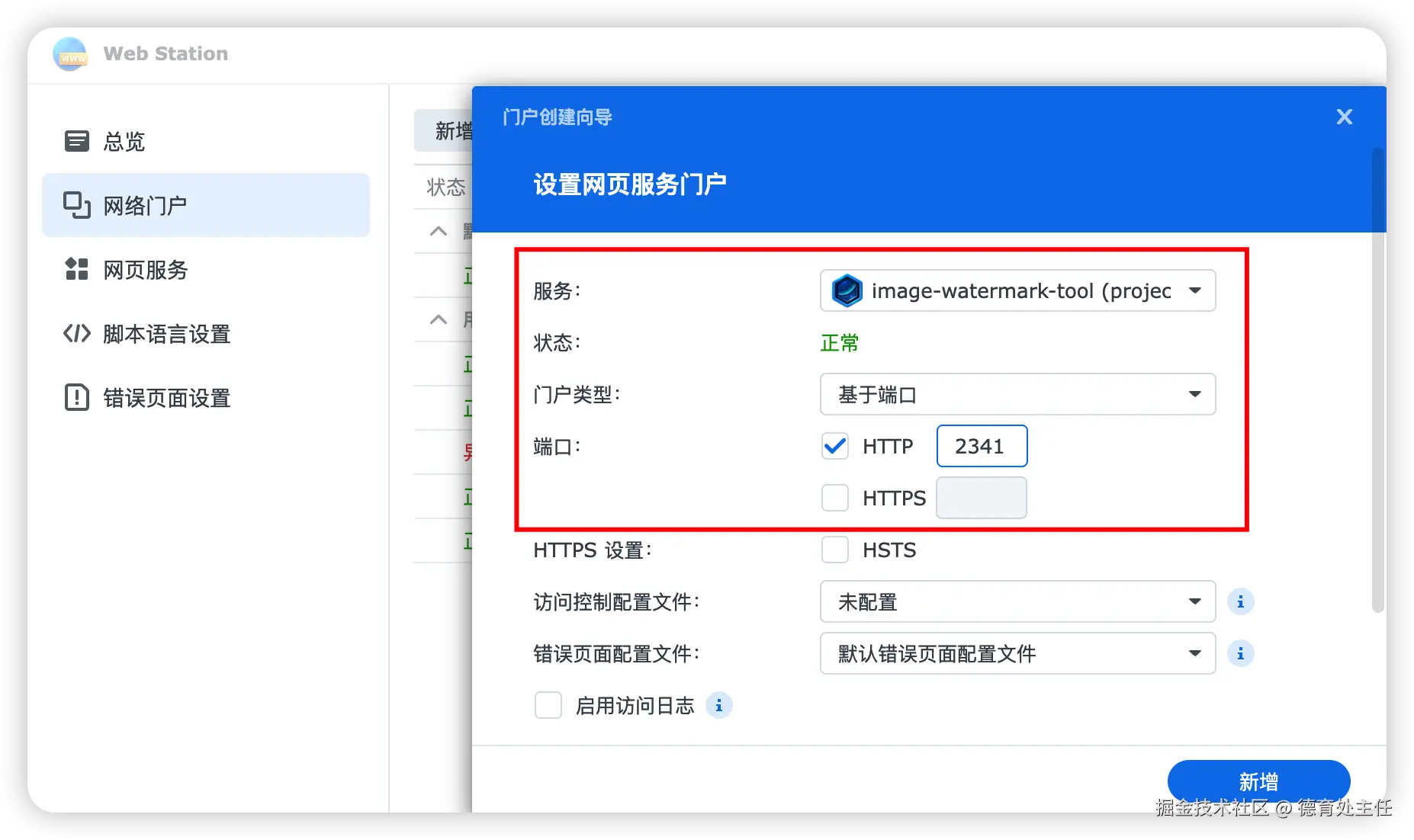 在"网页门户设置"里启用"通过 Web Station 设置网页门户"。