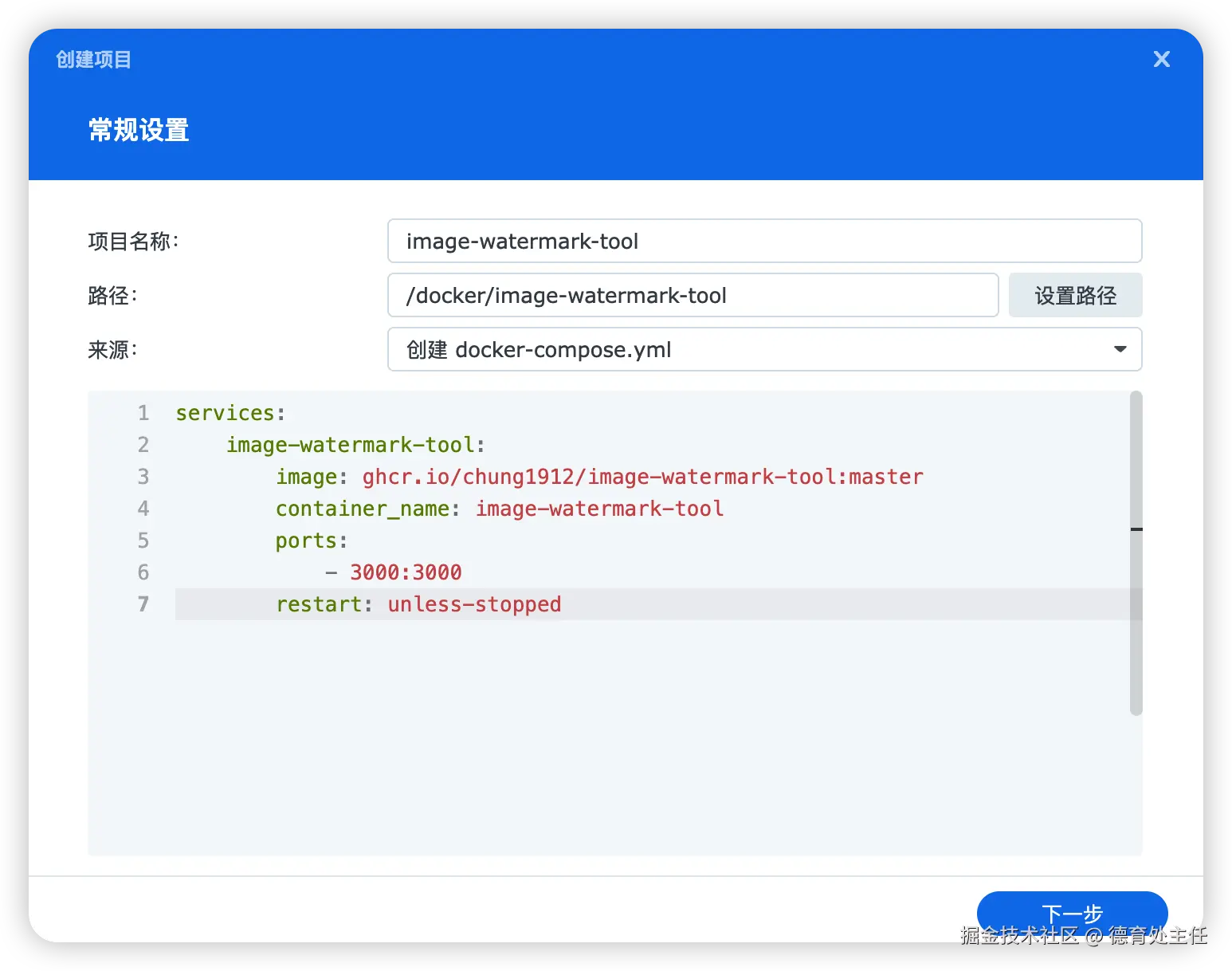 在 NAS 部署 Image Watermark Tool 很简单,我以群晖为例。
