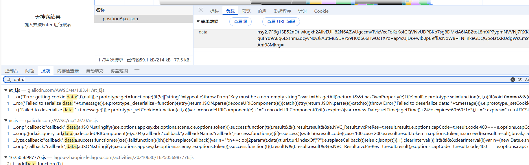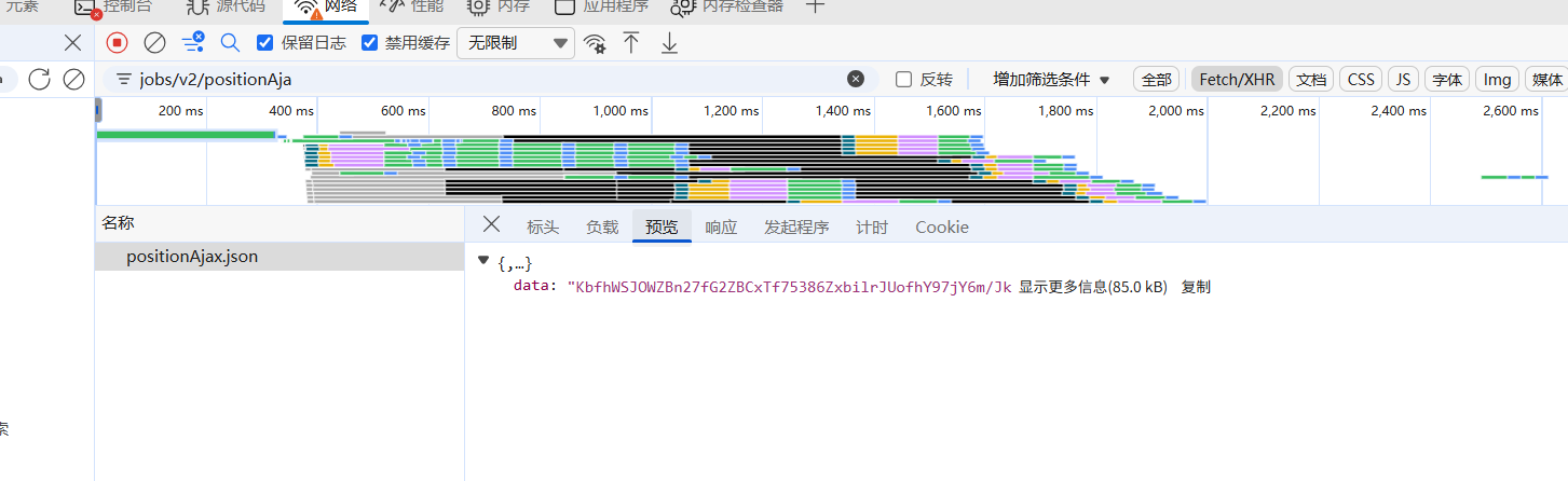 另外有响应密文的长度不够长,而此接口的密文长度很长,所以可以认定就是此接口,然后负载数据需要逆向来控制翻页: