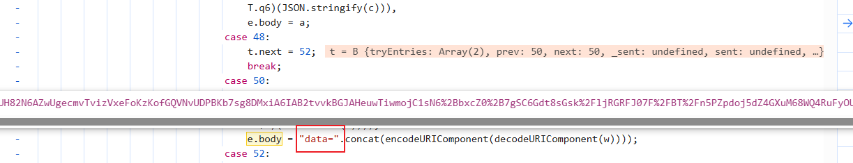 剩下请求头,xxx-Heade那三个参数都无需逆向,那我们就开始解决负载的data和响应密文,先解决负载data