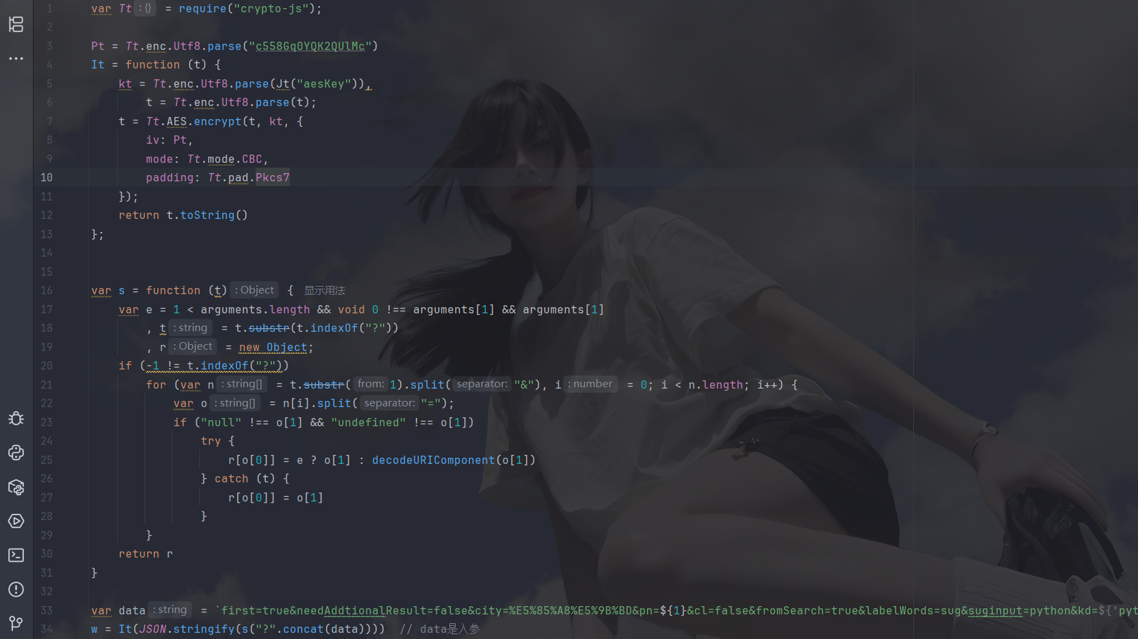 kt = CryptoJS.enc.Utf8.parse("006oLnqef=lJ6amrY9ujAV2EysBOn3Z7");