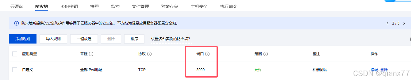 然后你输入你的云服务器ip:3000就可以看到你的本地网站了!如果看不到,其实可能是云服务器没开放相应的端口,如下设置一下即可浏览。