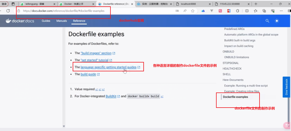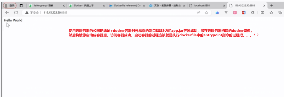 如下截图中的dockerfile文件中的Expose指令解释有误,dockerfile文件中expose暴露的端口是在镜像内部的操作系统环境下暴露的端口,即类似容器内部的端口,不是外部浏览器可以访问的端口,外部浏览器要访问镜像启动的容器应用需要做端口映射,即把容器内部的镜像端口暴露出去,在容器启动时指定-p