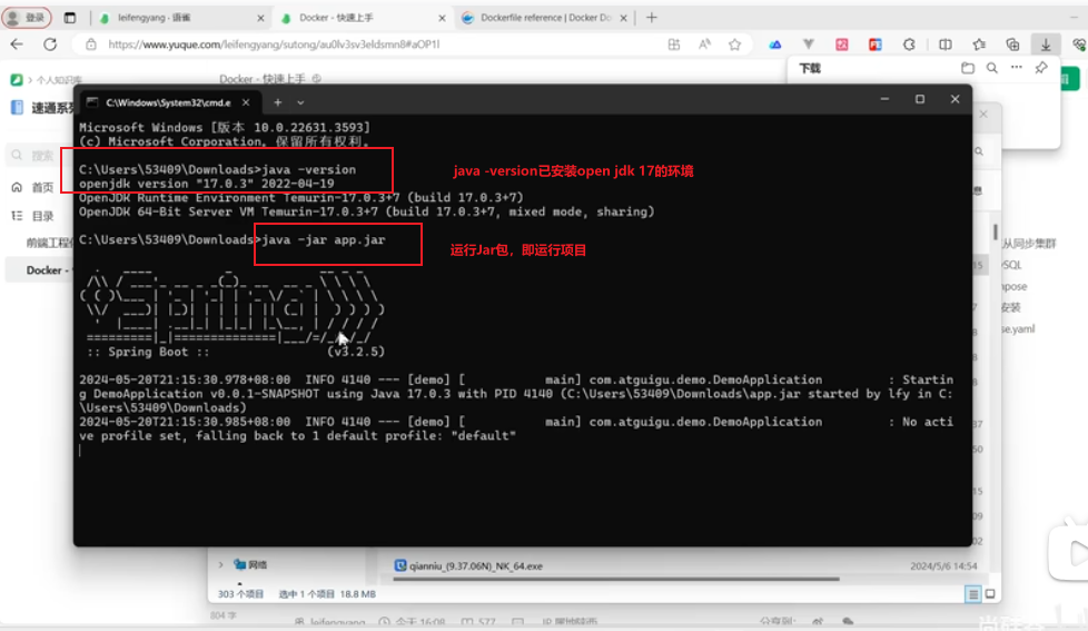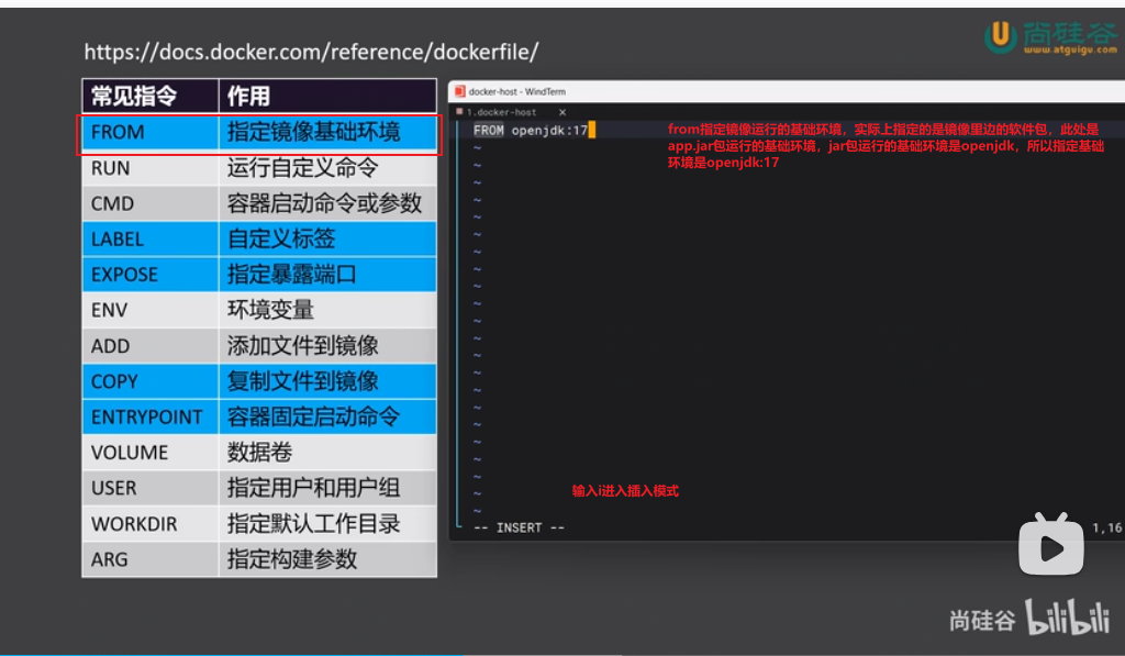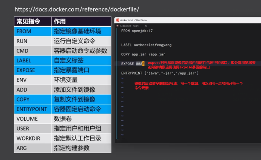 From:指定镜像运行的基础环境。实际上指定的是镜像里边的软件包运行的基础环境,此处镜像里的软件包是app.jar包,jar包运行的基础环境是jdk,所以此处From指定的基础环境是openjdk:17