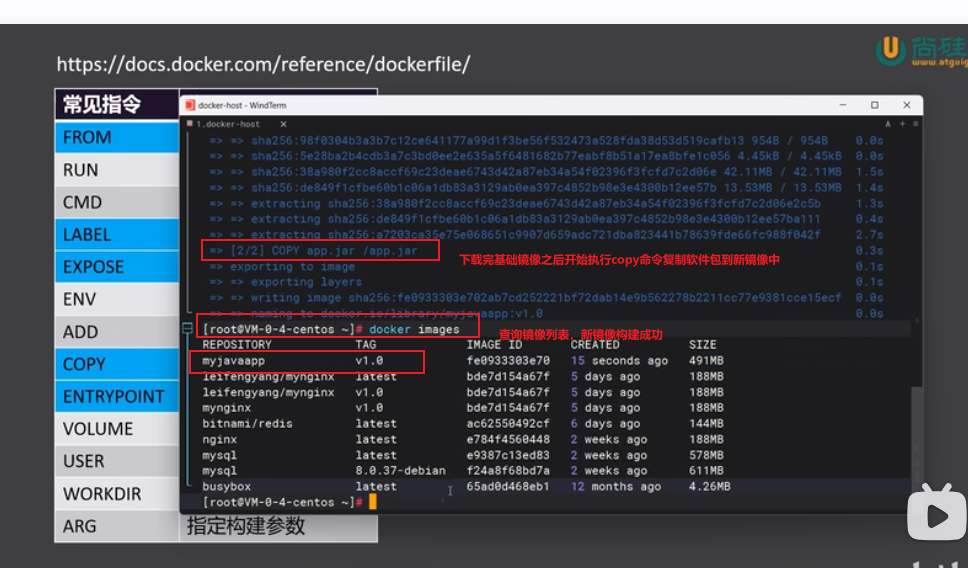 2.docker 的builder构建器就会根据dockerfile文件里的指令拿着app.jar文件制作成镜像。