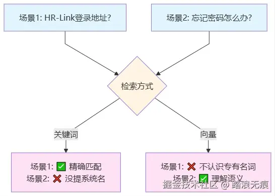 - 向量检索:❌ 找不到,因为embedding模型没见过这个专有名词