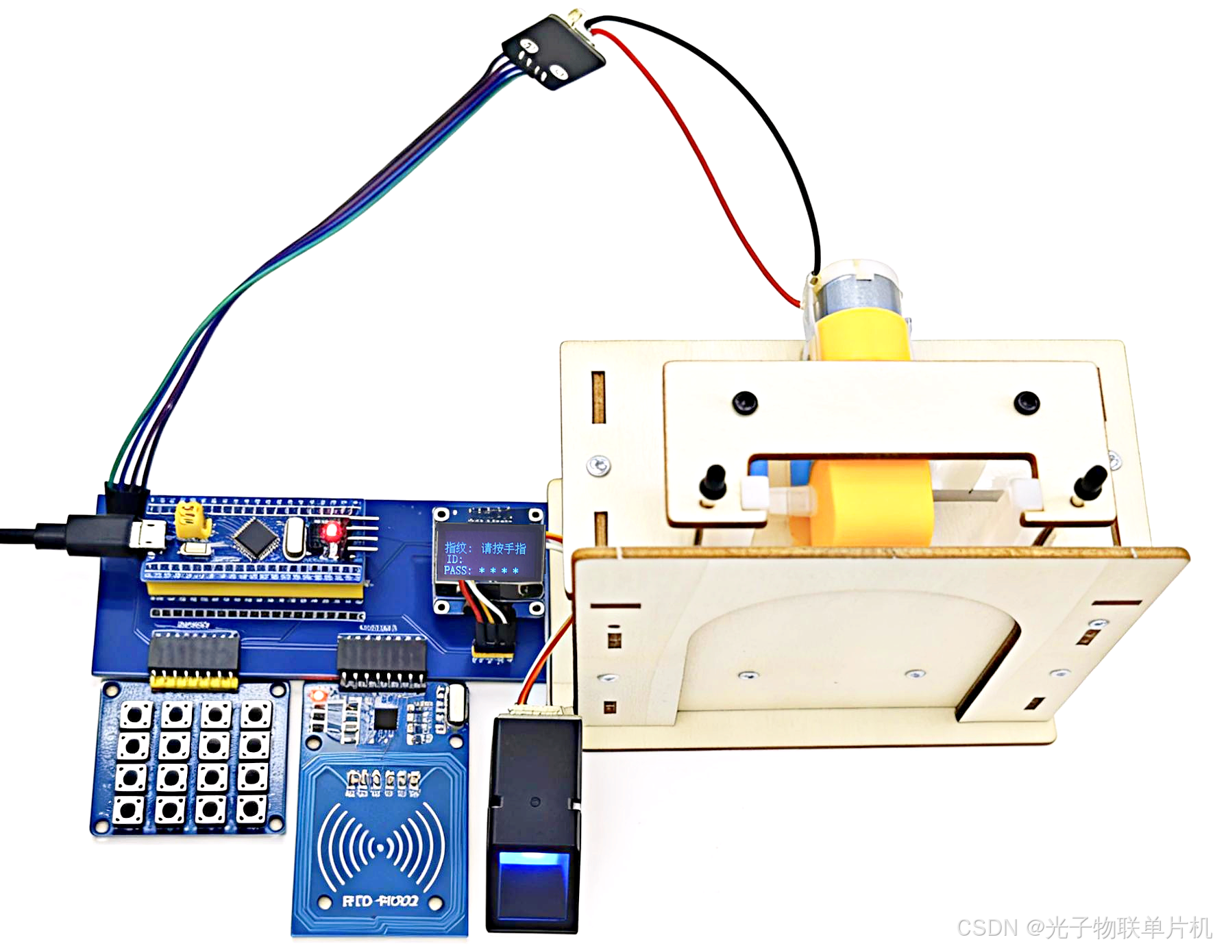 本文就做一个智能门锁套件模型,采用STM32F103C8T6单片机+直流有刷电机+键盘+NFC刷卡模块+指纹模块+液晶显示。键盘密码输入,NFC刷卡,刷指纹都能把门打开。