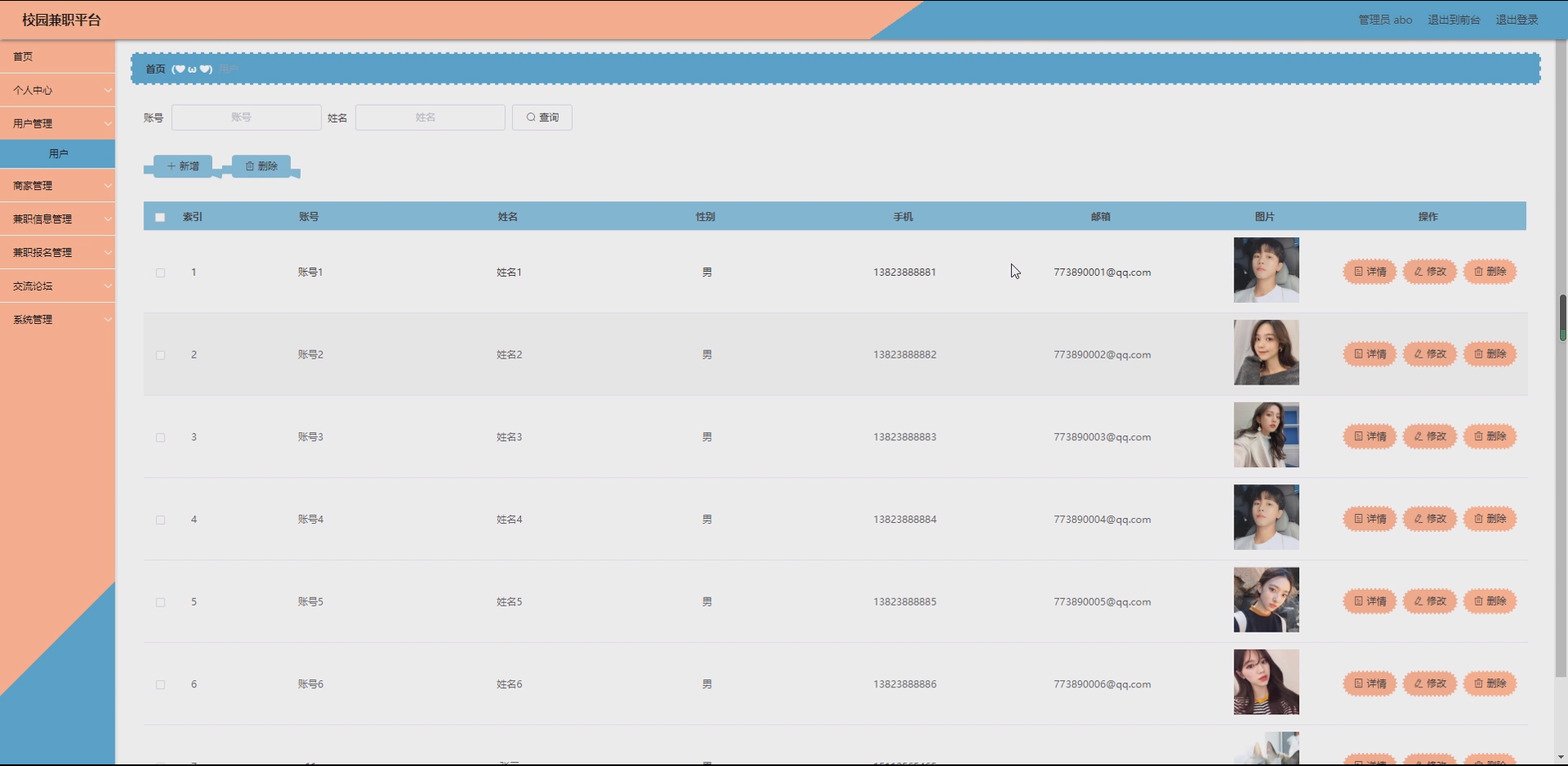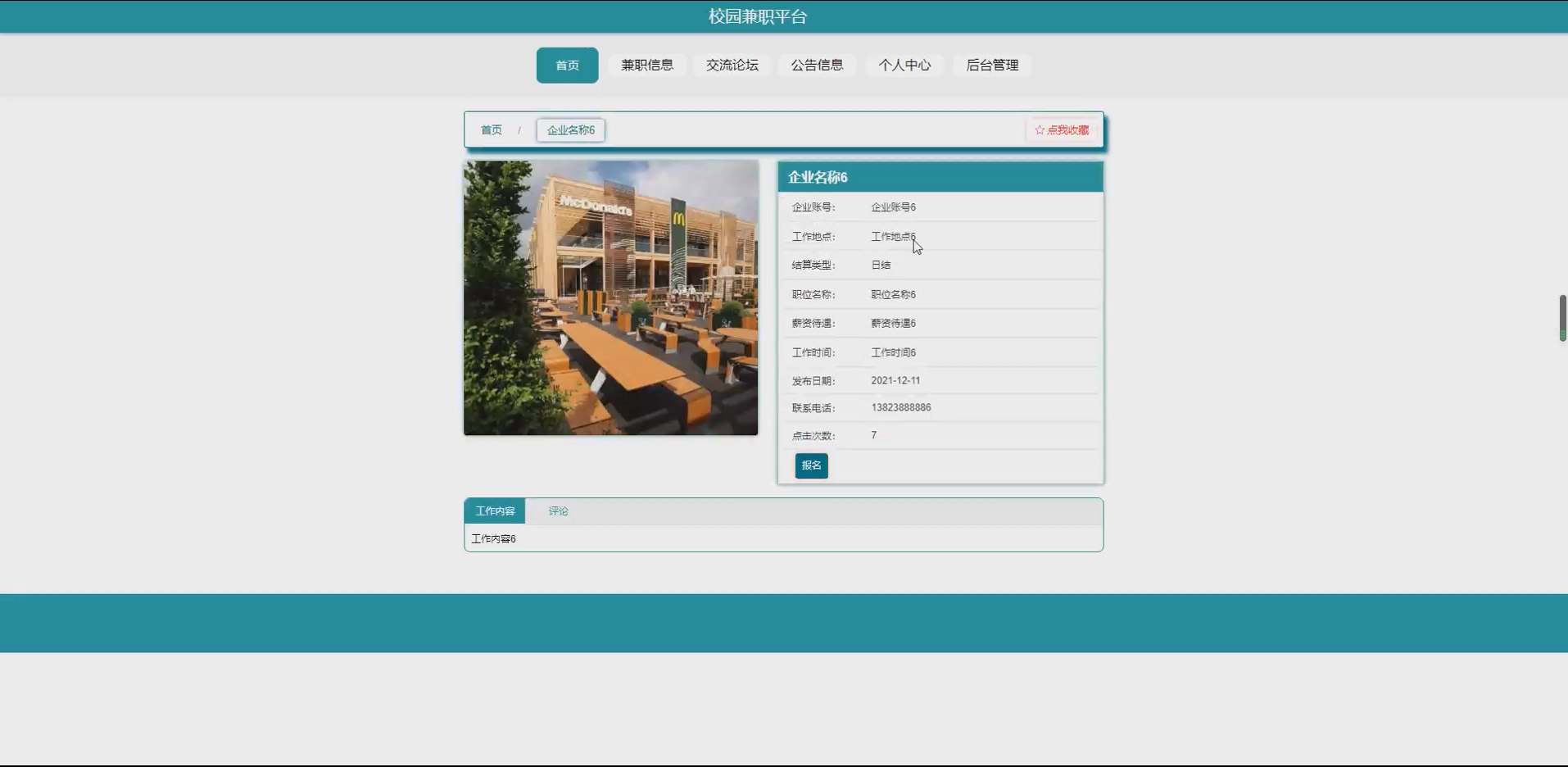 对于学生用户而言,平台提供了一个安全、便捷的兼职信息获取渠道,学生可通过平台快速筛选符合自身需求的兼职岗位并完成报名,有效降低了遭遇兼职诈骗的风险;对于商家而言,平台简化了兼职招聘流程,商家可快速发布兼职信息、筛选报名学生,提高了招聘效率,降低了招聘成本;对于学校而言,平台便于对校园兼职市场进行统一监管,规范兼职行为,保障学生的合法权益,营造良好的校园兼职环境。