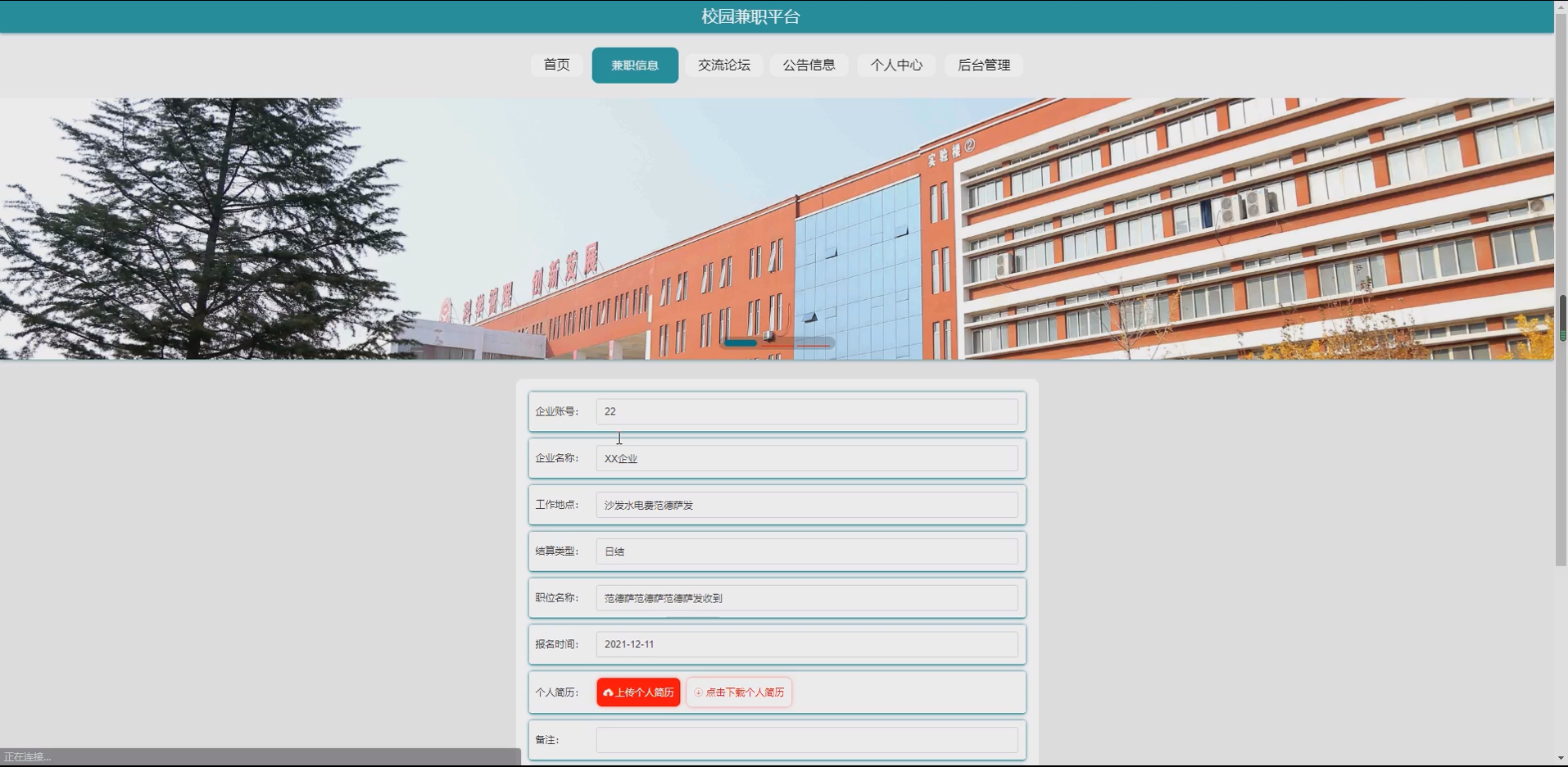 精准匹配功能:结合学生的专业、技能、兼职偏好等信息,以及商家的岗位需求,设计简单的匹配算法,为学生推荐合适的兼职岗位,提高报名成功率;