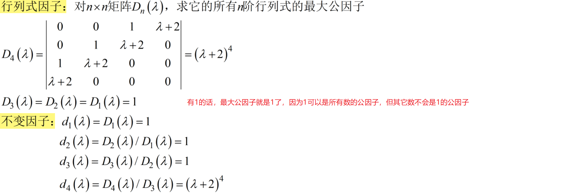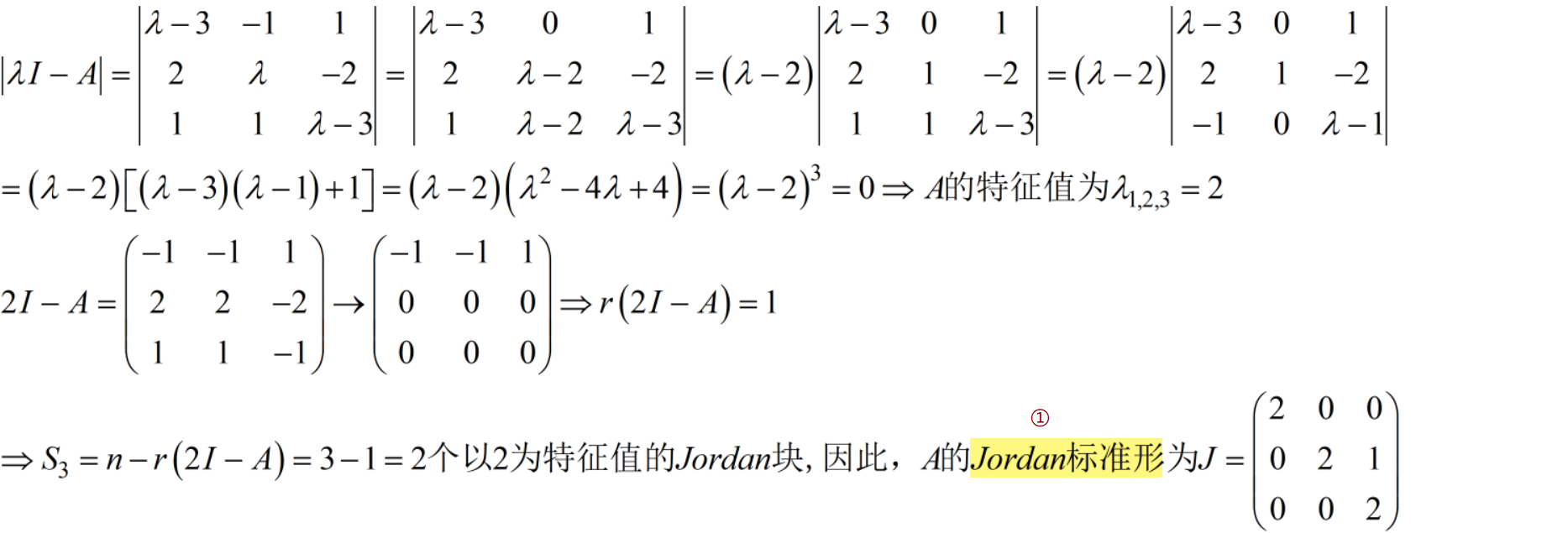 若给的矩阵A不是Smith标准形,则需要将λI−AλI-AλI−A初等变换成Smith标准形后再计算不变因子
