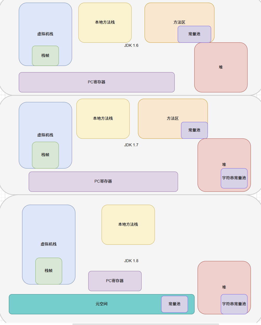 JDK 7 之前,只有常量池的概念,都在方法区中。