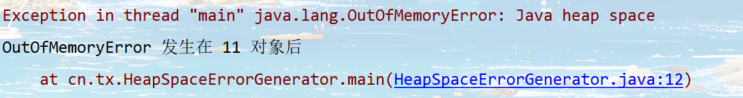 System.out.println("OutOfMemoryError 发生在 " + bigObjects.size() + " 对象后");