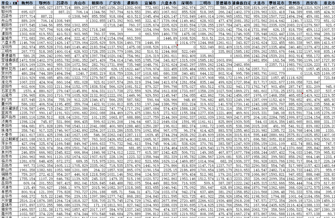 该数据以公里(KM)为单位,采用矩阵格式呈现,便于直接导入统计软件进行分析,节省了研究人员的预处理时间。