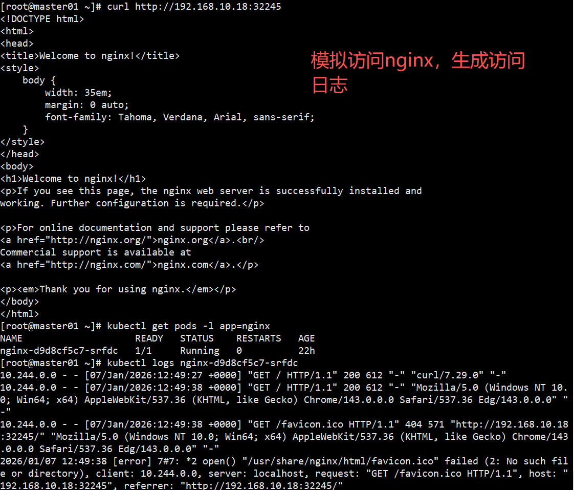 kubectl logs nginx-d9d8cf5c7-srfdc