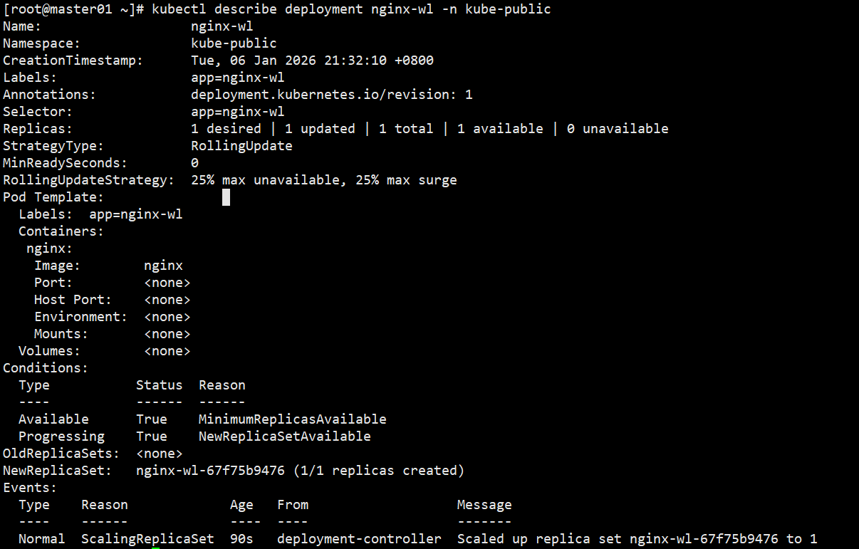 kubectl create deployment nginx-wl --image=nginx -n kube-public