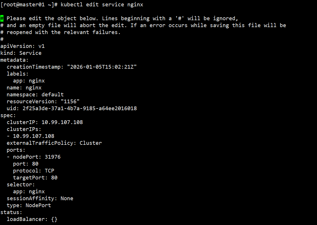 kubectl expose deployment nginx --port=80 --target-port=80 --name=nginx-service -- type=NodePort
