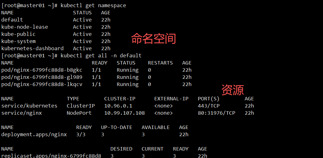 kubectl get <resource> [-o wide|json|yaml] [-n namespace] - 选项说明: