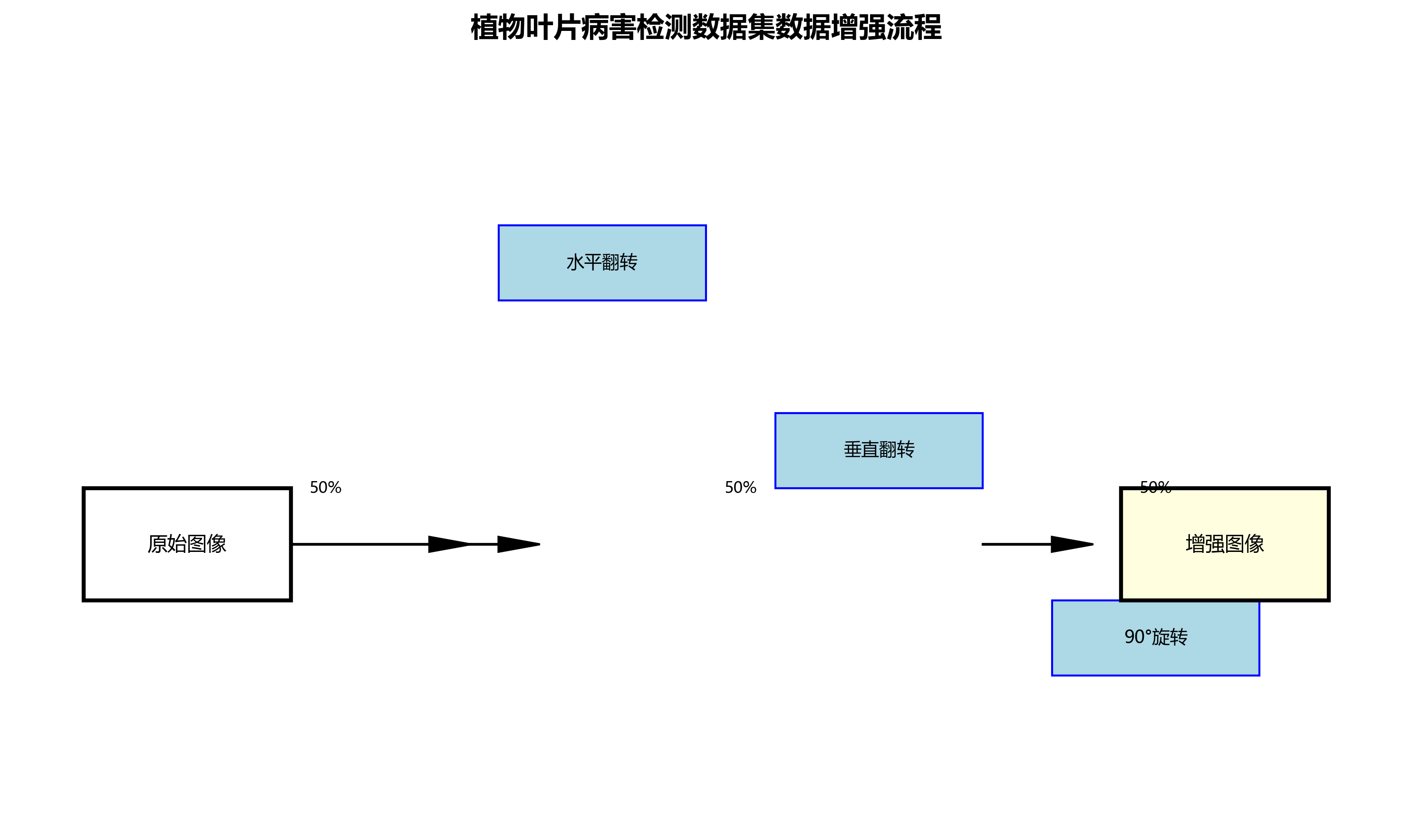植物叶片病害检测的第一步是构建高质量的数据集。我们收集了多种植物叶片病害图像,包括霜霉病、白粉病、炭疽病等多种常见病害类型。为了解决数据集不足的问题,我们采用了多种数据增强技术: