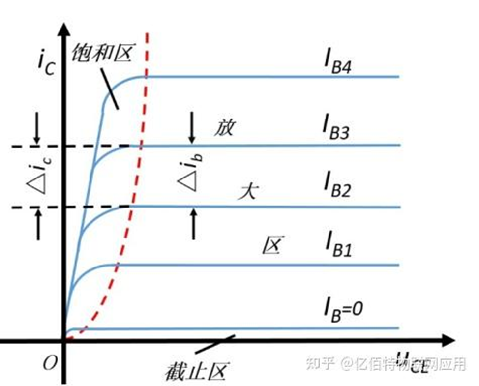 - 放大区 (Active / Linear) ------做放大器用 ,基极(旋钮)处于半开状态,轻轻拧动一点点。出水量随着旋钮的动作线性变化。基极电流变化 1 m A 1mA 1mA,集电极电流可能变化 100 m A 100mA 100mA。发射结正偏,集电结反偏。