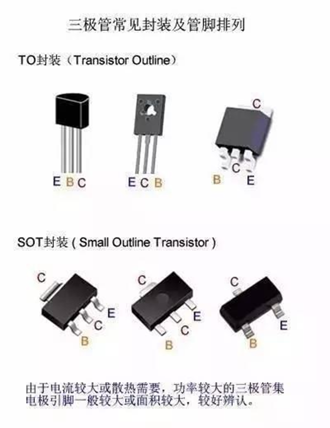 三极管由两块N型半导体夹一块P型半导体(或者反过来)组成,共三个引脚: