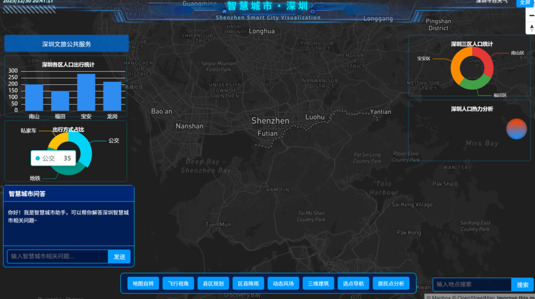 深圳智慧城市管理平台是一个集成地理信息系统(GIS)、数据可视化、空间分析于一体的综合性城市管理解决方案。平台以数据为核心驱动力,通过智能化手段提升城市规划、管理、服务的科学性与精准性。