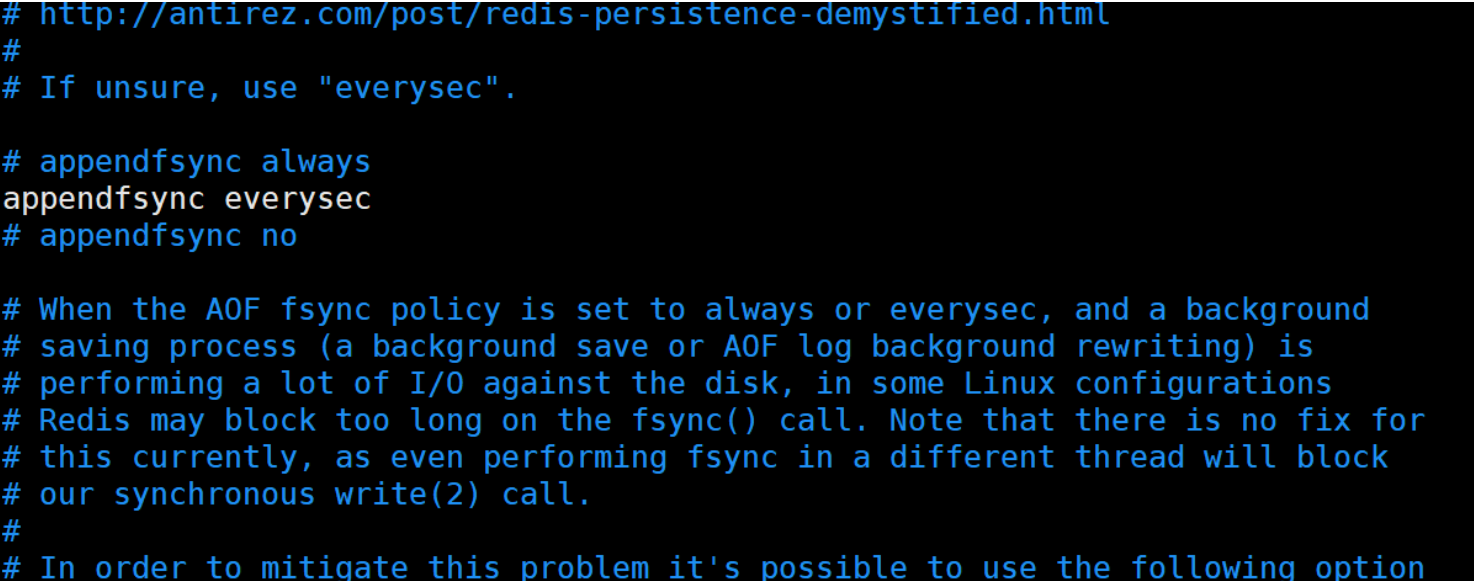 everysec 命令写入aof_buf后只执行write操作,不进行fsnc,每秒由同步线程进行fsnc ||频率低一些,数据可靠性会降低,性能会高