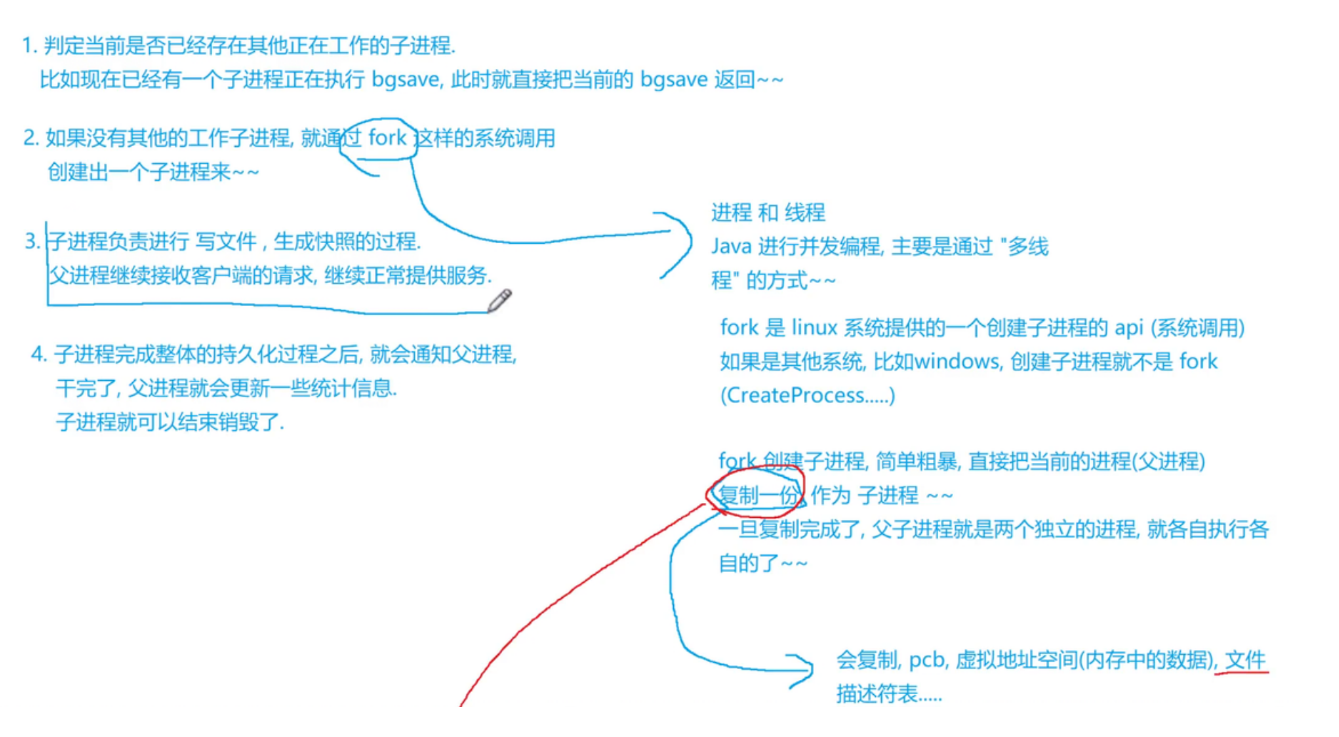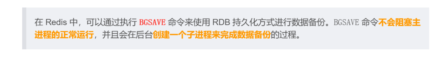bgsave 执行快照操作不会影响Redis服务器处理其他客户端的请求和命令 此处Redis是使用多进程的方式来完成的并发编程