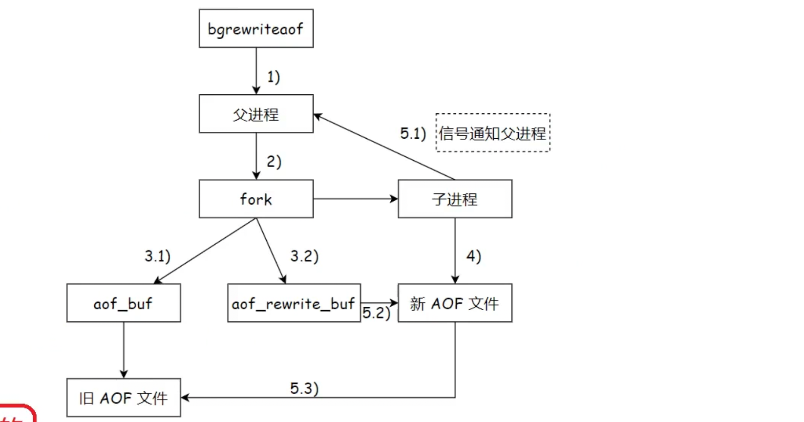 **!!!**在子进程fork完后 父进程仍接收请求所以 父进程就会将修改的信息 传入缓冲区 然后再刷新到原有的AOF文件中