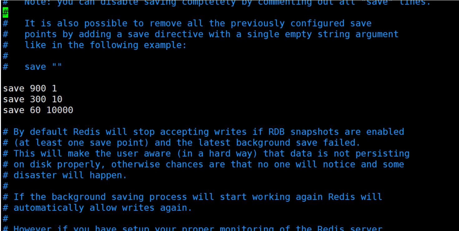 在Redis配置文件中,设置一下,让Redis 每隔多长时间/每产生多少次修改 就触发