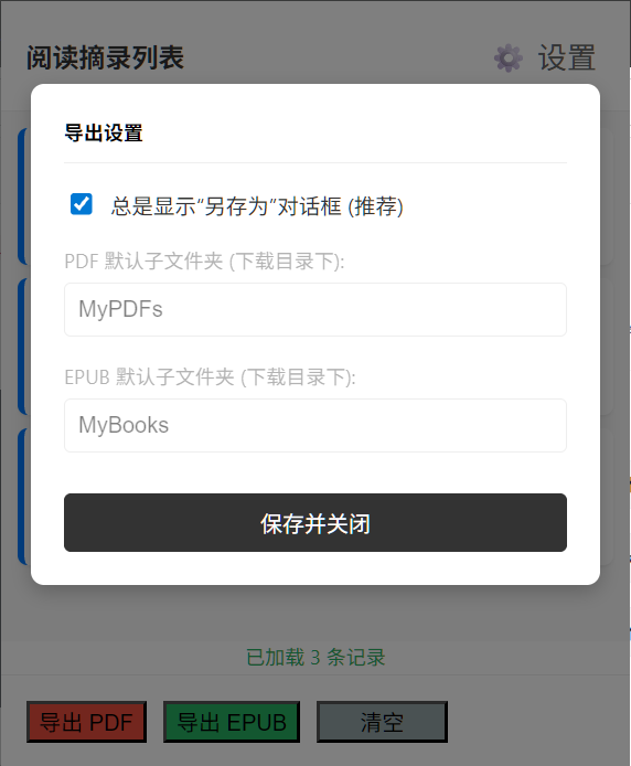 chrome.storage.local在不同页面间持久化暂存摘录列表。