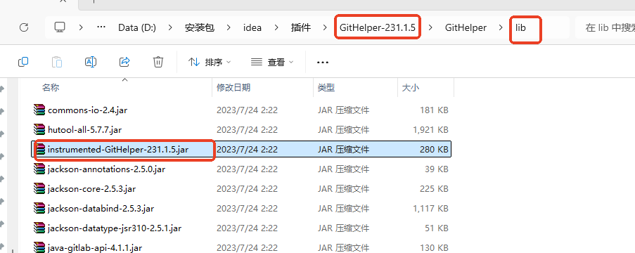 - 将下载的zip压缩包解压,找到插件源代码的jar包