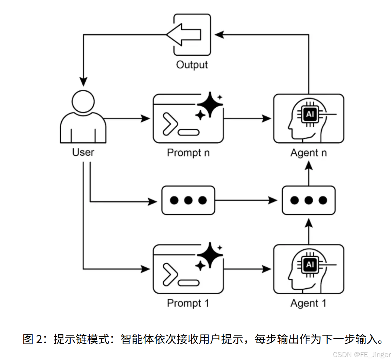 提示链(又称流水线模式)的核心是将复杂任务拆解为多个小而聚焦的子任务,每个子任务通过专用提示独立处理,前一步输出作为后一步输入,形成链式依赖。